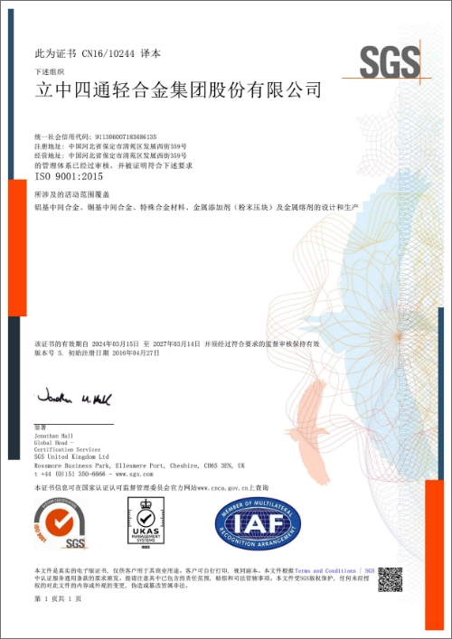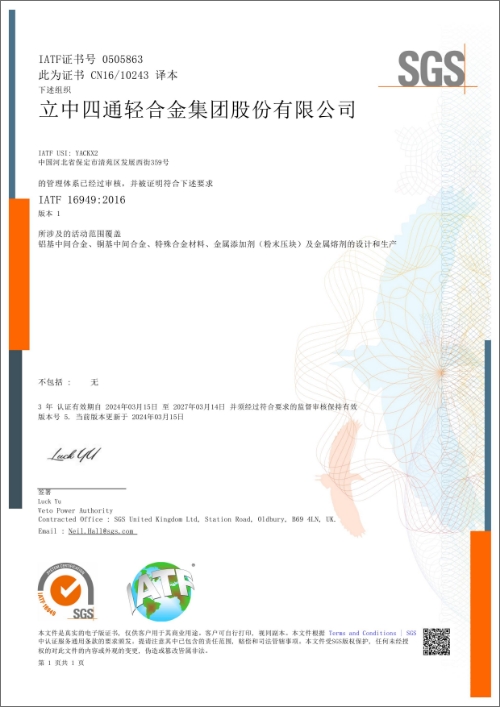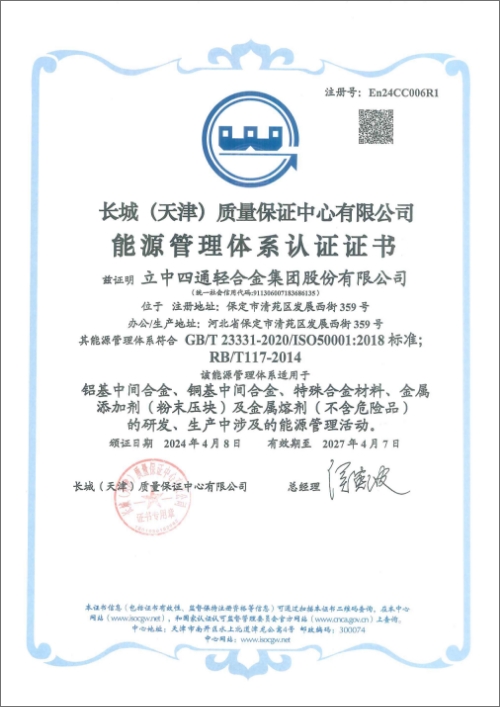 All companies of Lizhong Group have obtained certifications for quality management system, environmental management system, occupational health and safety system, energy management system, information security, and the highest international standards of ASI aluminum industry management.